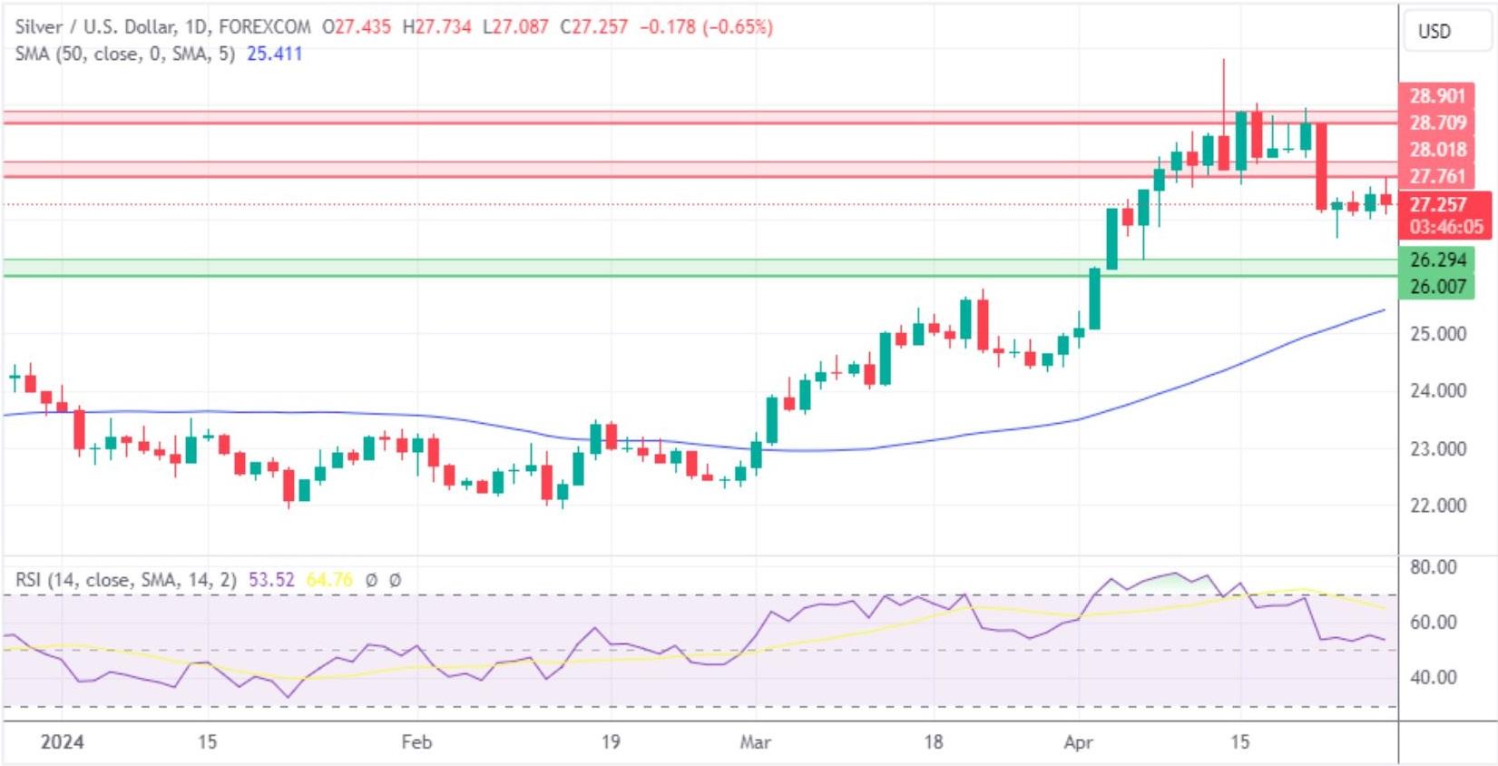 其他贵金属白银回落,因黄金/白银比率站稳在85.50水平以上。尽管国债收益率下降,但今日交易中并未提供支撑给白银市场。白银最近曾试图站稳在27.75美元至28.00美元的阻力位上,但未能成功。如果白银跌破27.00美元水平,将向26.00美元至26.30美元的支撑位走去。