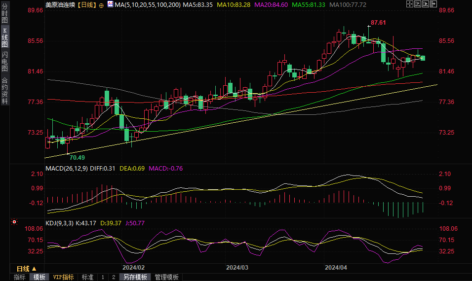 美原油上周五反弹受阻于21日均线后回落,收报0.13%,收报83.66美元/桶。