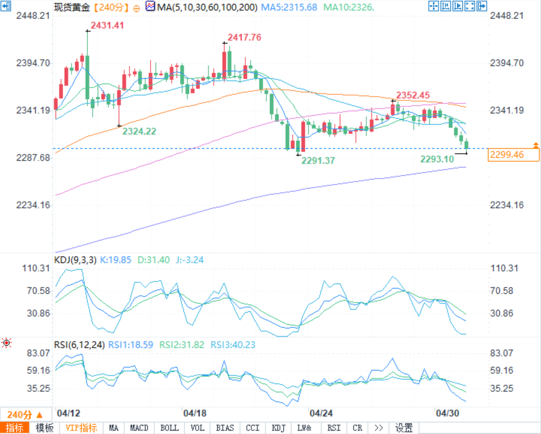 标题:黄金失守2300美元,美联储放鹰预期和避险需求削弱打击金价
