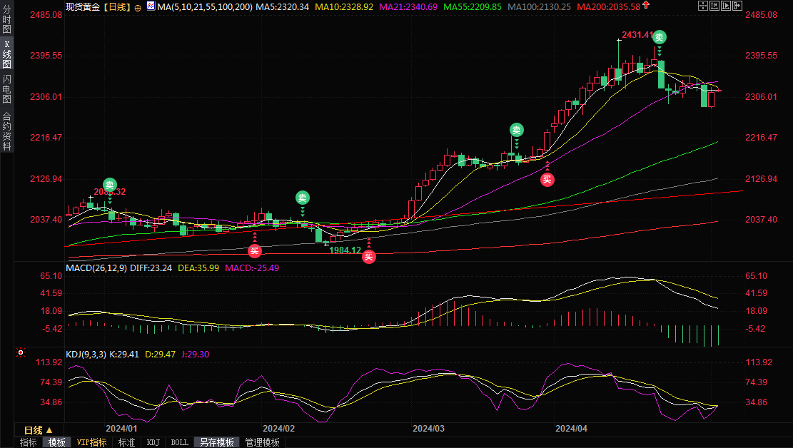 若黄金进一步上涨,那么金价可能看向4月19日高点2417美元/盎司和历史高点2431美元/盎司。