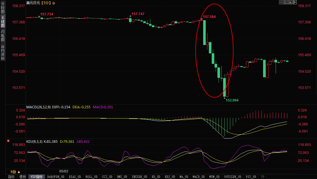 汇通财经APP讯——周三(5月1日)美市收盘后,美元/日元快速下跌近460点,连破157、156、155、154、153五大关口,刷新逾两周低点至152.993。