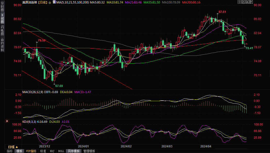 美国原油期货下跌0.05美元,结算价报收每桶78.95美元,为3月12日以来最低。全球指标