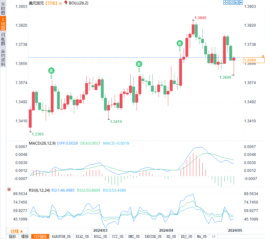 加拿大央行政策预期加拿大央行行长的言论暗示,加拿大的货币政策与美国的货币政策差异存在限制,但目前仍有操作空间。由于加拿大通胀放缓,市场预计加拿大央行可能在6月或7月降息,这可能会对加元造成压力。