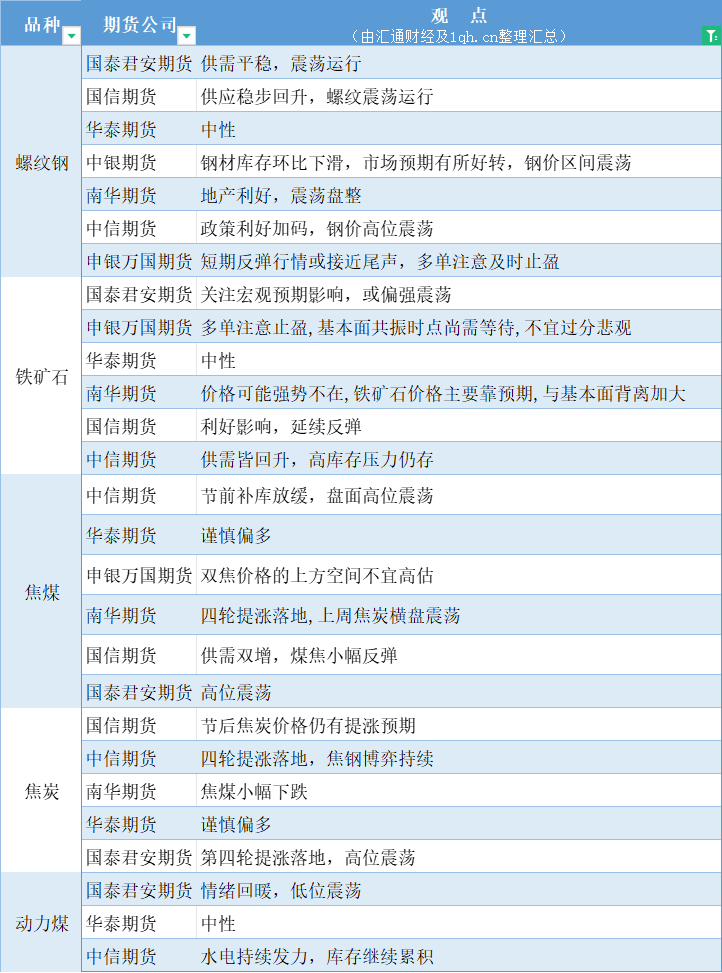 期货公司观点汇总一张图:5月6日黑色系(螺纹钢、焦煤、焦炭、铁矿石、动力煤等)