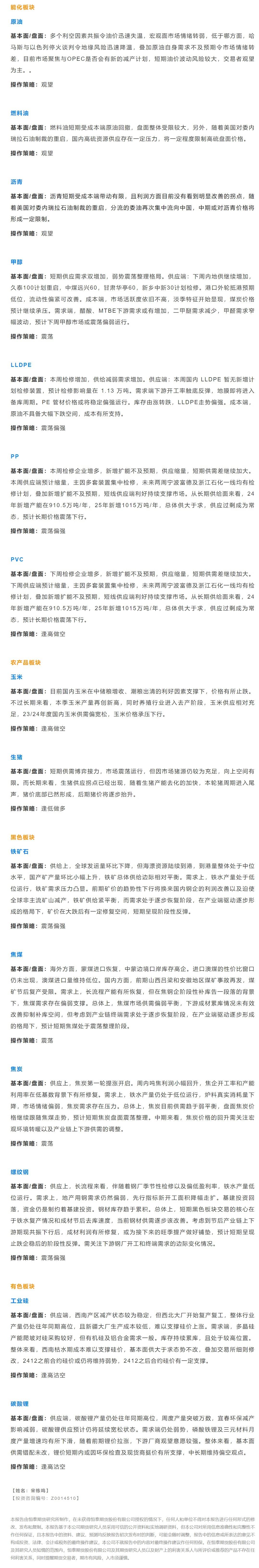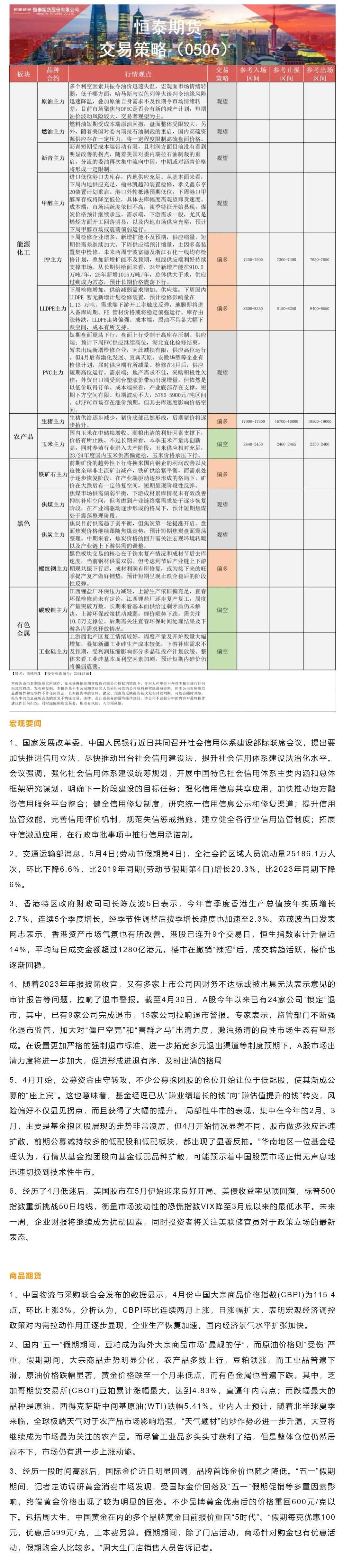 以下是恒泰期货今日早间交易策略,覆盖品种有:宏观分析、原油燃料油等能源化工、玉米生猪等农产品、黑色系如铁矿石焦煤焦炭螺纹钢、有色系如工业硅碳酸锂等。
