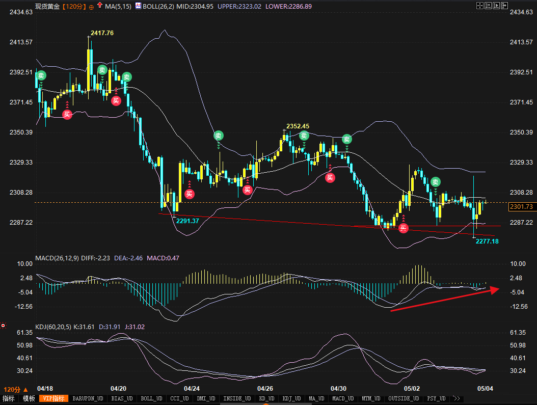 汇通财经APP讯——现货黄金日图连续四天守住了2290附近的支撑,在上周五(5月3日)非农后的行情一波三折,冲高逾20美元后又大跌近45美元,非农后的那个急跌也只是短暂刺破2290但迅速得到买盘支撑。日图级别出现类似看涨孕线信号,上周五收盘于2301.73美元/盎司。