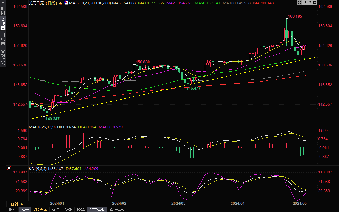 短期展望上,美元/日元的近期趋势取决于日本的工资增长和家庭支出数据以及美联储的言论。日本公布的数据低于预期,可能导致日本央行按兵不动,从而导致货币政策分歧向美元倾斜。然而,FOMC成员的言论将影响买家对美元/日元的兴趣。FXEmpire分析师Bob Mason指出,美元/日元保持在50日和200日均线上方,证实了看涨的价格信号。美元/日元若能站稳155关口,可能会让多头冲上158关口。