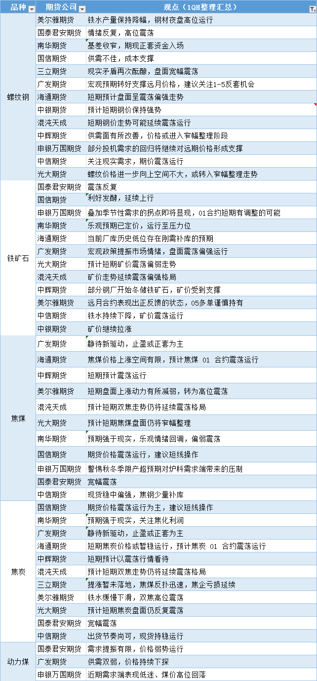 标题:期货公司观点汇总一张图:11月18日黑色系(螺纹钢、焦煤、焦炭、铁矿石、动力煤等)
