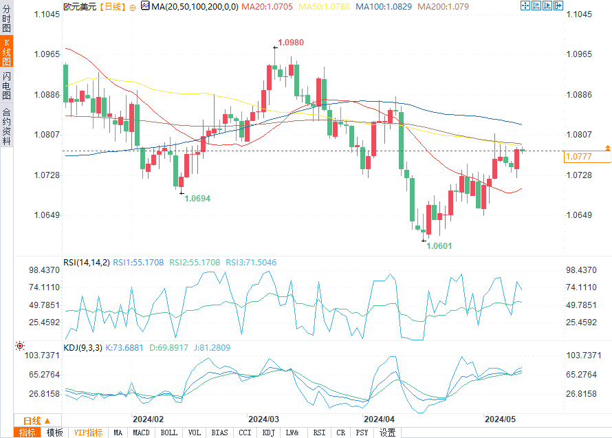 联邦公开市场委员会成员鲍曼和巴尔将在美国经济日历上发表讲话,这可能会为未来的货币政策提供洞见。密歇根大学5月消费者信心指数初值预计为76.3,略低于之前的77.2,表明消费者信心可能出现下滑。此外,初步通胀预期设定为3.2%。