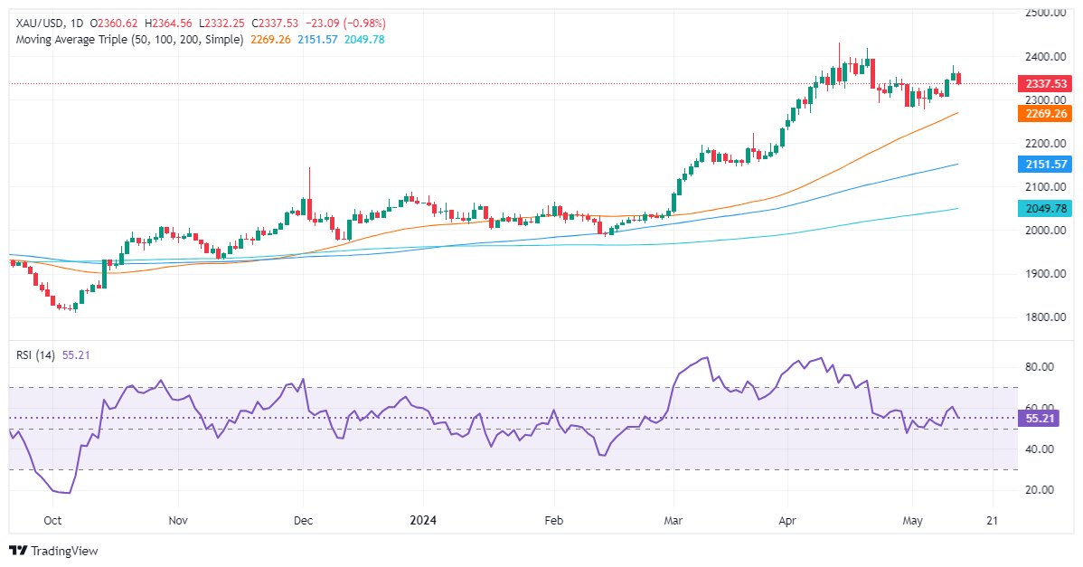汇通财经APP讯——周一(5月13日),现货黄金重挫近25美元,收于2336美元/盎司附近。FXStreet分析师Christian Borjon Valencia周一撰文,对金价技术走势进行分析。