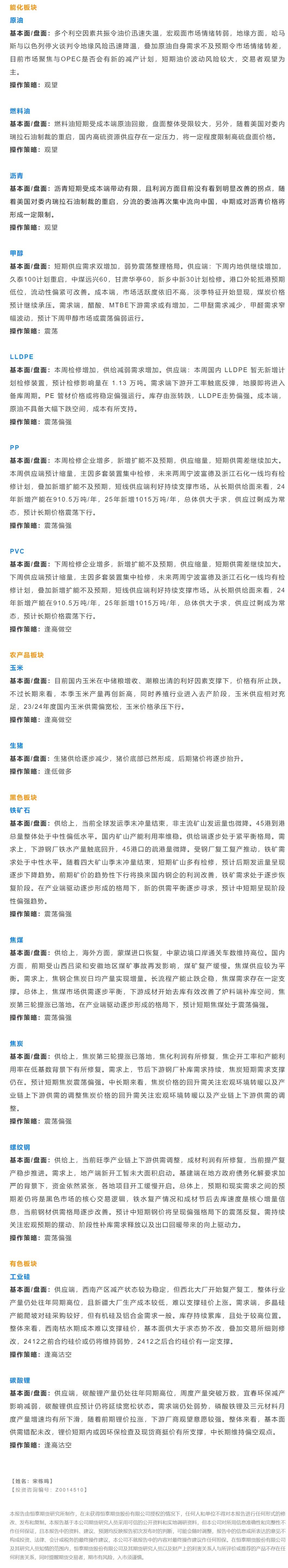 以下是恒泰期货今日早间交易策略,覆盖品种有:原油燃料油等能源化工、玉米生猪等农产品、黑色系如铁矿石焦煤焦炭螺纹钢、有色系如工业硅碳酸锂等。