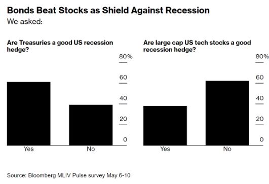 但即使科技股逐渐成为对抗通货膨胀的黄金替代品,它们在经济衰退事件中继续输给了国债。调查受访者对这两种资产类别在经济萎缩时表现的看法几乎是完全相反的,61%的人表示他们在经济衰退期间会选择国债,而62%的人表示他们不会持有这些科技巨头股票。调查显示,约有25%的受访者选择美国经济在2024年的头号风险是经济衰退。
