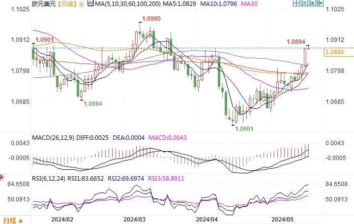 要确认欧元兑美元的看涨逆转,需要持续上破 1.0860(4 月高点区域)。Kuptsikevich说:“这种进一步上涨的能力将打破自去年最后几天以来形成的下降趋势。”