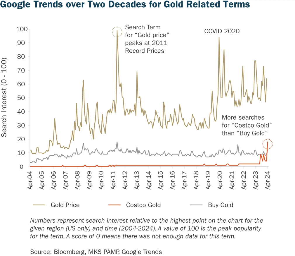 “开市客黄金和随后的媒体热潮在影响舆论方面已经超越了其基本面影响力,仅凭这一点就让黄金作为一种资产类别重新回到新散户投资者的视野中。”