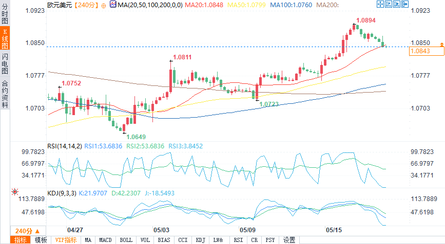 北京时间18:32,欧元/美元报1.0843,跌幅0.21%。英镑/美元报1.2653/54,跌幅0.13%。
