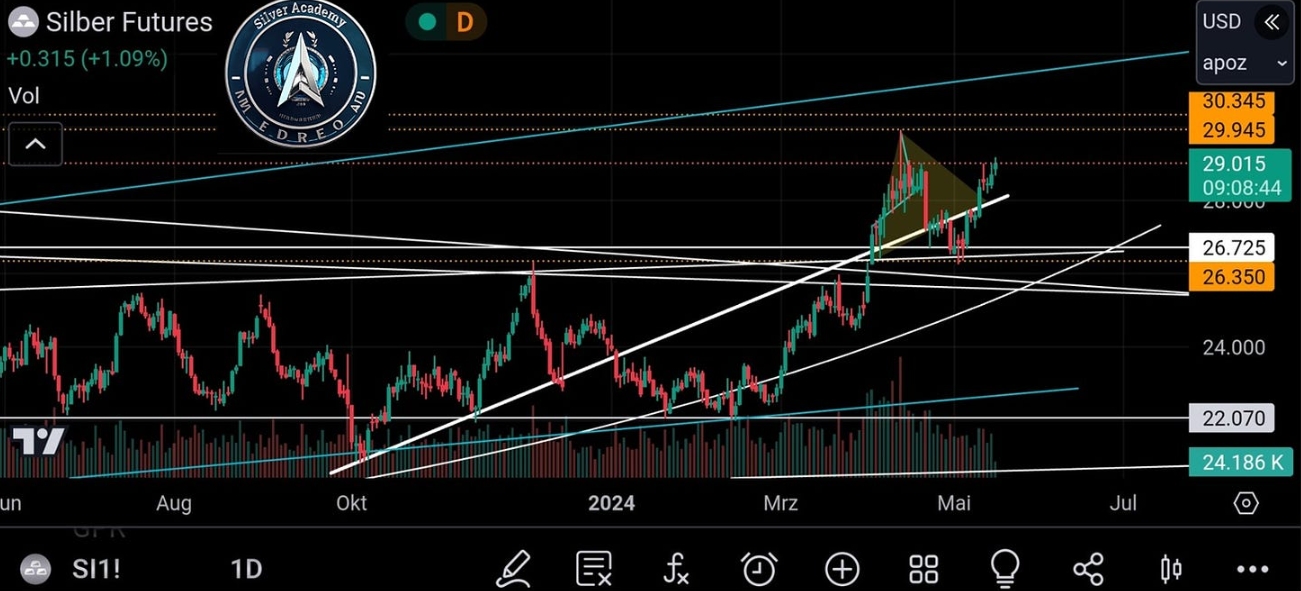 乔恩提到,白银价格突破了30美元大关,预计将出现大幅上涨。他解释:“这是一个关键点,因为我们最近看到了已经存在十年的形态的成功突破。我们建议你充满信心地持有而不是出售。此外,考虑购买实物黄金和白银,以及精心挑选的矿业股票。”