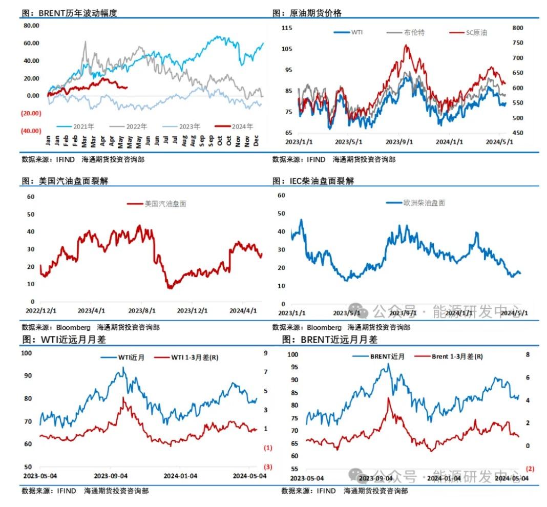 另外还有一个积极的变化是美国汽油裂解差在过去一周持续回暖,此前美国汽车协会预计,在2024年5月23日星期四至5月27日星期一的阵亡将士纪念日假期旅行期间,将有4,380万美国人乘坐各种交通工具离开家50英里或更远的路程,这是近二十年来的最高水平,这将是美国夏季旅行的近乎创纪录的开始。期货市场盘面已经开始有所体现,在原油连续三天反弹同时,汽油涨幅连续强于原油表现。不过目前市场还有一个投资者等待明朗的不确定性,这让投资者保持了观望态势,盘面直接体现是过去几天在原油绝对价反弹同时,原油市场月差结构维持平稳,