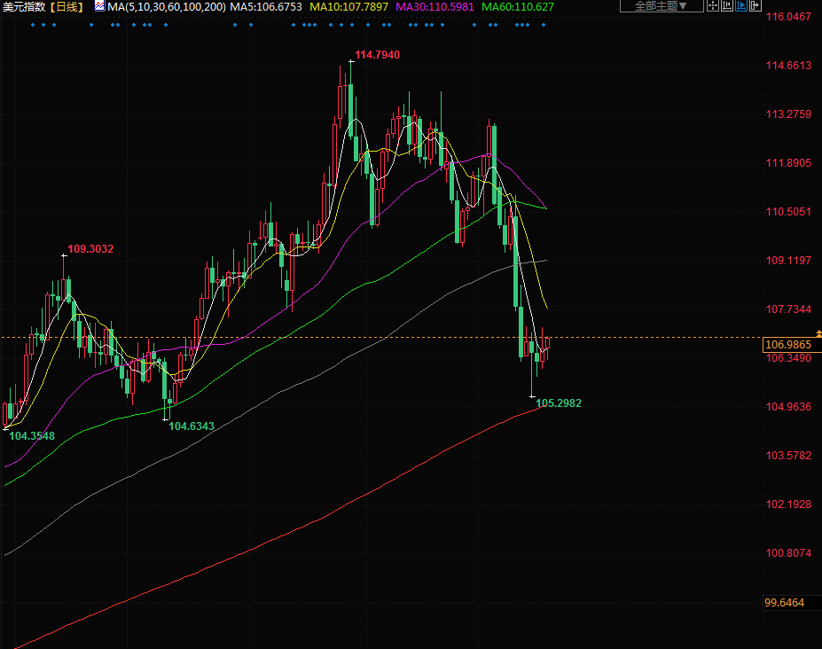 美元指数上涨0.19%,报106.90,早些时候一度下跌0.33%。该指数本周至今上涨了约0.58%,为10月初以来的最大涨幅,部分收复了上周4%的跌幅,当时美国通胀数据引发该指数录得2020年3月以来最大周跌幅。