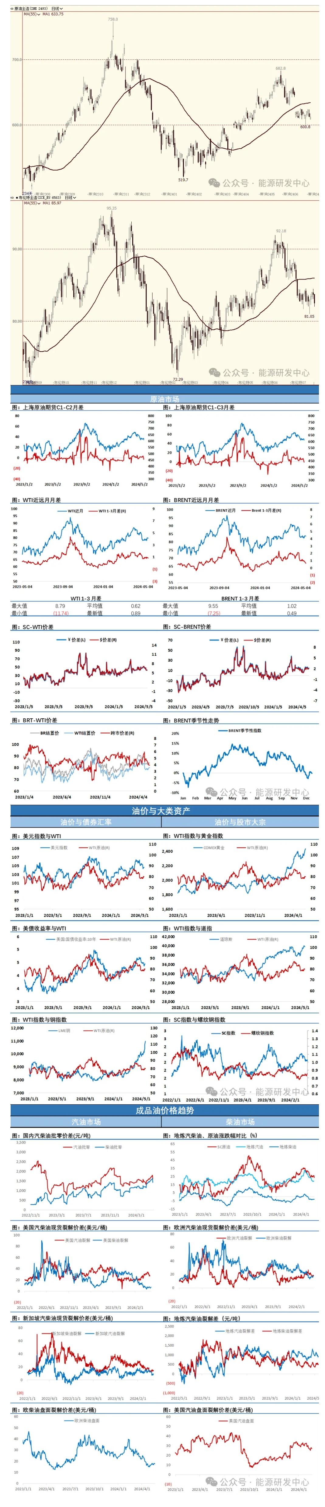 周二油价出现较大跌幅,虽然日内有反复,但随着凌晨API库存数据全面累库压力下油价最终低位报收,本周油价没有能够承接上周的反弹行情,而是在过去半个月的震荡区间上档阻力附近止步,随后在疲弱的现货市场引领下重回弱势,延续了区间震荡走势,继续施压下档支撑。微弱的需求好转预期并未能扭转市场信心,投资者无意进一步追高油价。反映消费端的上海原油期货及广泛用于国际贸易基准的