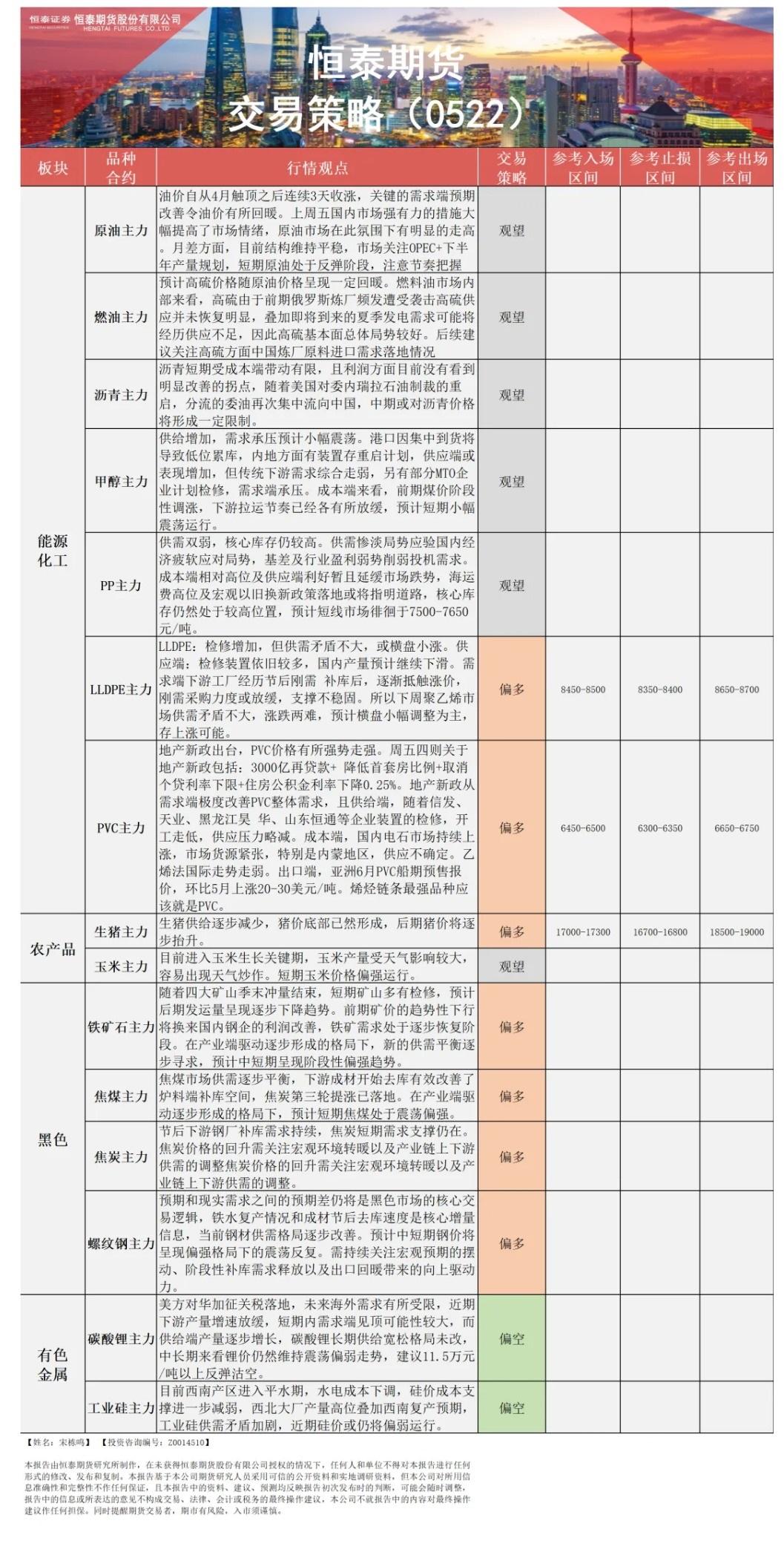 标题:恒泰期货5月22日早间交易策略
