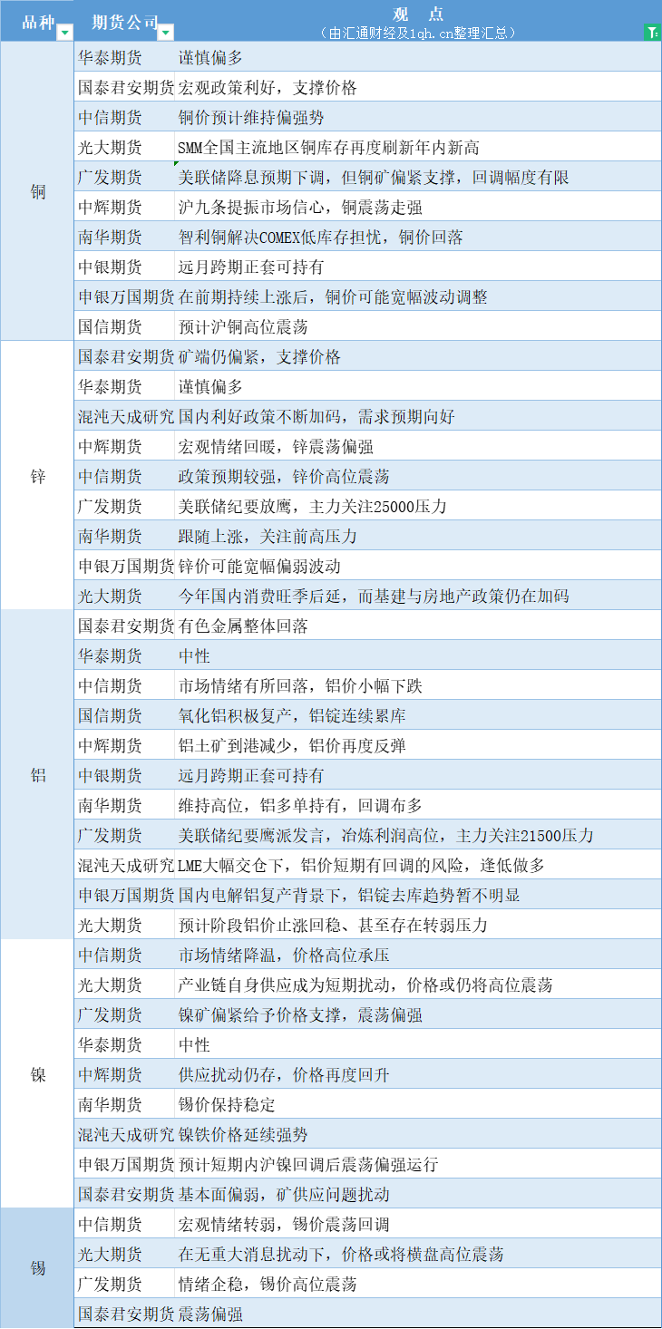标题:期货公司观点汇总一张图:5月28日有色系(铜、锌、铝、镍、锡等)