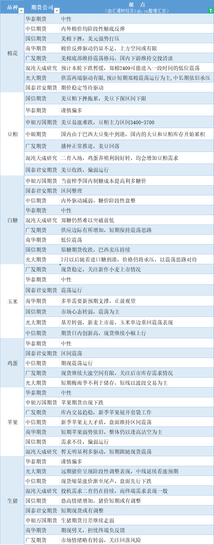 期货公司观点汇总一张图:5月30日农产品(棉花、豆粕、白糖、玉米、鸡蛋、生猪等)