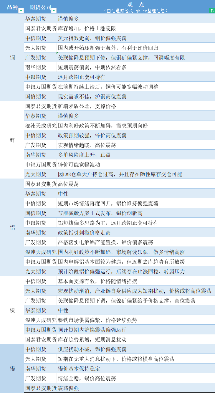 标题:期货公司观点汇总一张图:5月30日有色系(铜、锌、铝、镍、锡等)