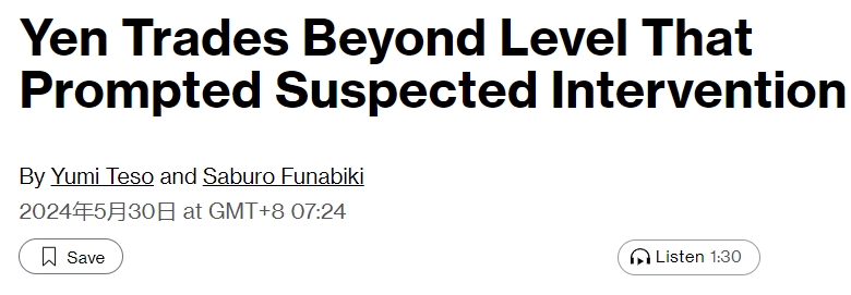汇通财经APP讯——周四(5月30日),美元/日元升至157.61,最高触及157.67。据彭博报道,日元汇率突破引发疑似干预的水平。文章释出重磅信号,日本当局可能已出手购买3.5万亿日元。