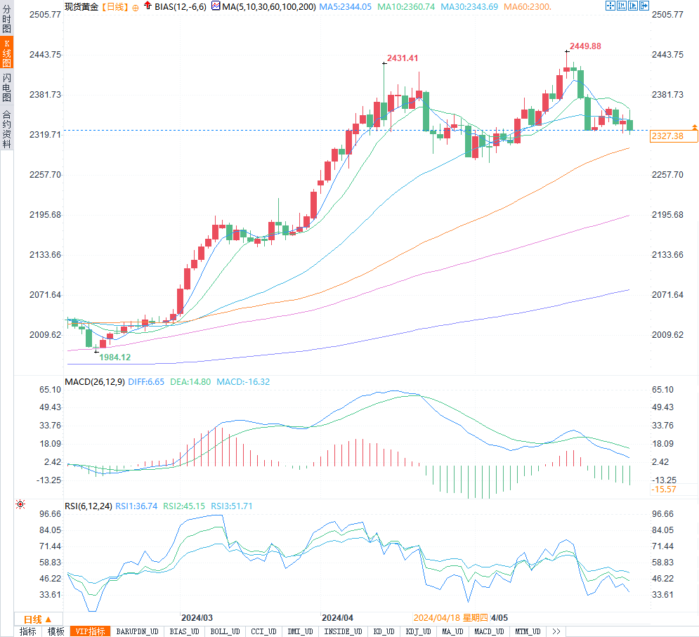 现货黄金收跌0.68%,收报2327.05美元/盎司;