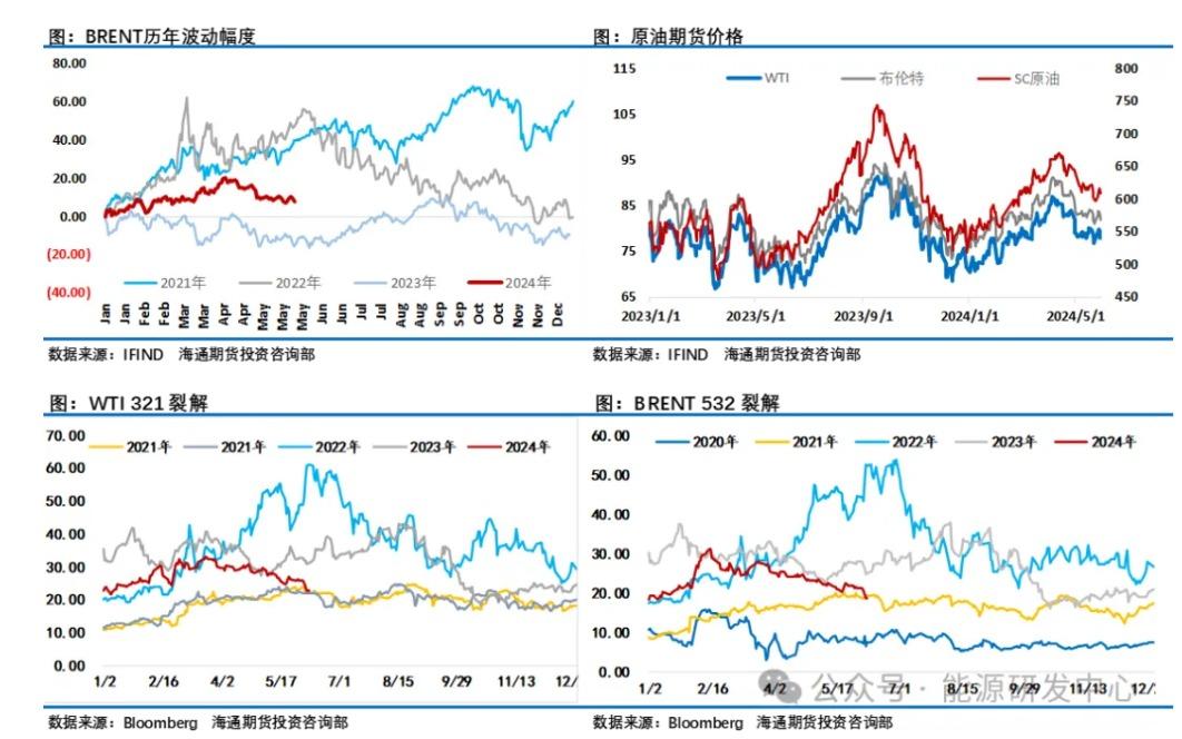 另外欧佩克+将审查成员国的产能的评估期延长至2025年11月底,由三个独立来源提供,以供2026年参考产量水平指导。欧佩克+联盟也在关注个别成员国遵守配额的情况,要求超额生产国实施额外减产,沙特能源部表示欢迎伊拉克、俄罗斯和哈萨克斯坦重新承诺遵守欧佩克减产协议的决定并在6月底前重新提交对其自今年年初以来超产的更新补偿方案。沙特的原油产量一直维持在生产配额附近,自愿减产后沙特自身大部分时间都将产量控制在配额下方,供应端数据指向沙特2024年略微超额生产。伊拉克和哈萨克斯坦2024年一季度未完成承诺的减产,这两个国家制定了详细的补偿计划,承诺在2024年5-12月进行补偿。俄罗斯能源部表示俄罗斯4月份原油产量由于技术原因超出了配额,不过其承诺将制定补偿性减产计划,俄罗斯仍致力于在现行欧佩克+协议下自愿减产。自愿减产延长到2024年底意味着上述未能严格执行减产任务的国家在下半年其产量管控仍面临很大压力。