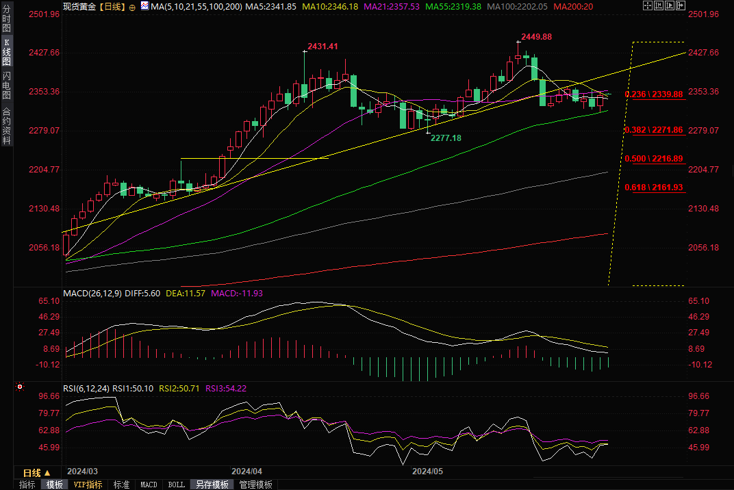 现货黄金现报2350.41美元/盎司。金价周一上涨近1%,收报2350.28美元/盎司,因为弱于预期的美国经济数据巩固了美联储将在今年晚些时候降息的预期,使美元和债券收益率走低,帮助金价从55日均线附近展开反弹。