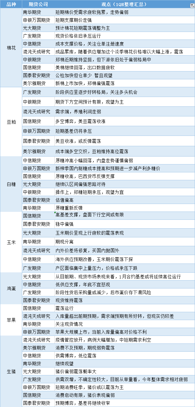 标题:期货公司观点汇总一张图:11月21日农产品(棉花、豆粕、白糖、玉米、鸡蛋、生猪等)