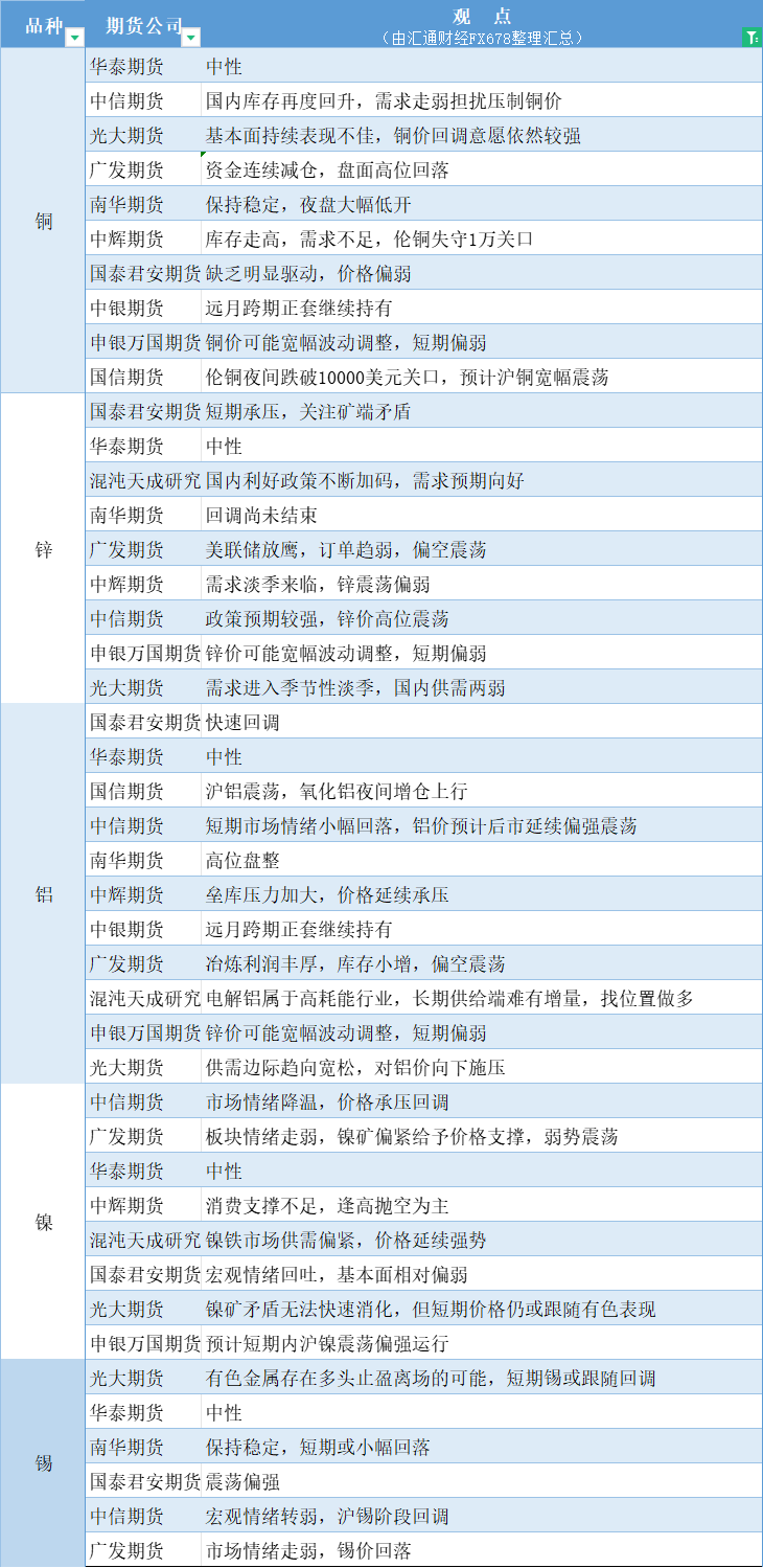 标题:期货公司观点汇总一张图:6月5日有色系(铜、锌、铝、镍、锡等)