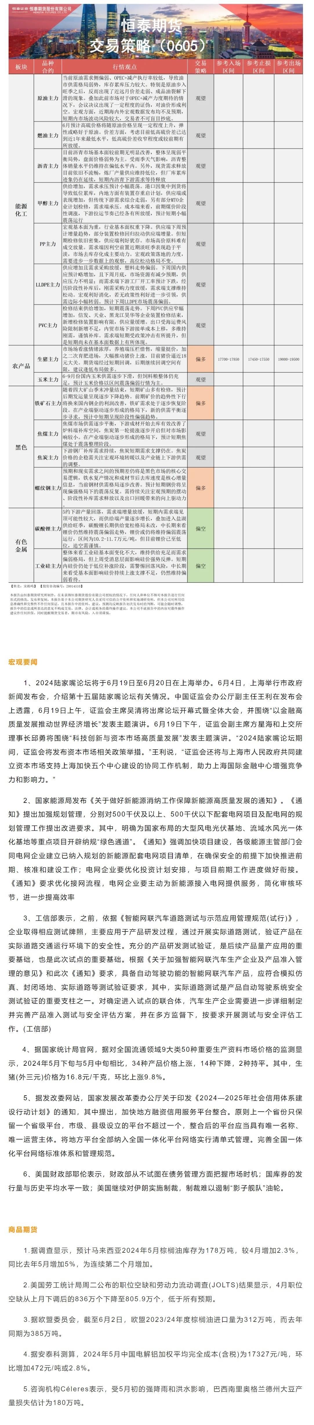 标题:恒泰期货6月5日早间交易策略