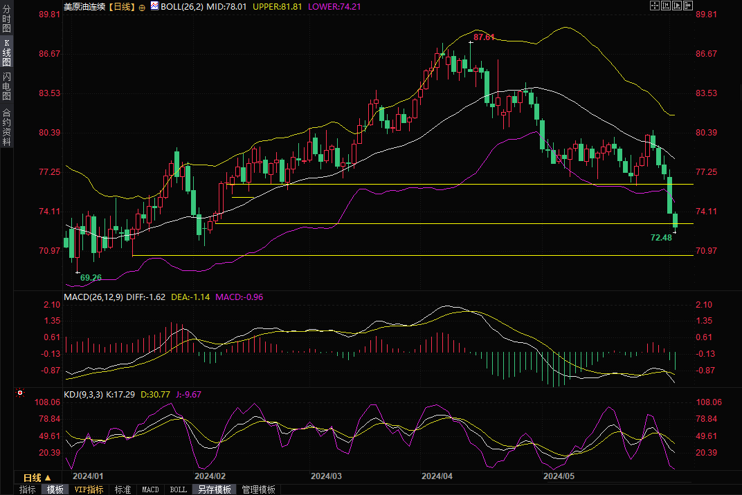 布伦特原油期货周二盘中最低触及76.76美元/桶,为2月5日以来新低,结算价报每桶77.52美元,跌幅约1.07%,为连续四个交易日下跌。