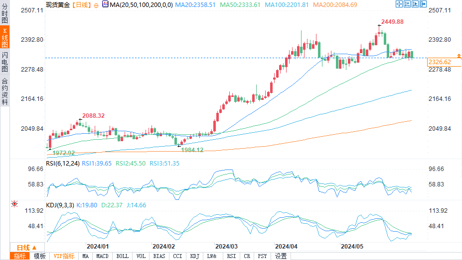 现货黄金收报2326.86美元/盎司,跌幅1%。