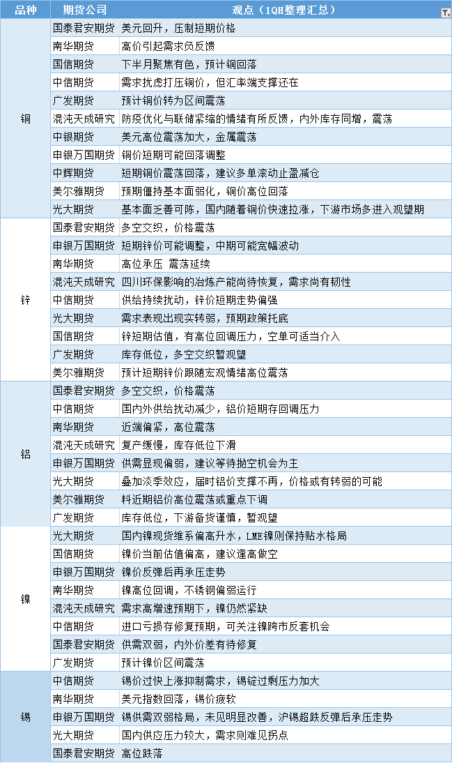 标题:期货公司观点汇总一张图:11月21日有色系(铜、锌、铝、镍、锡等)