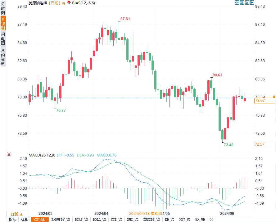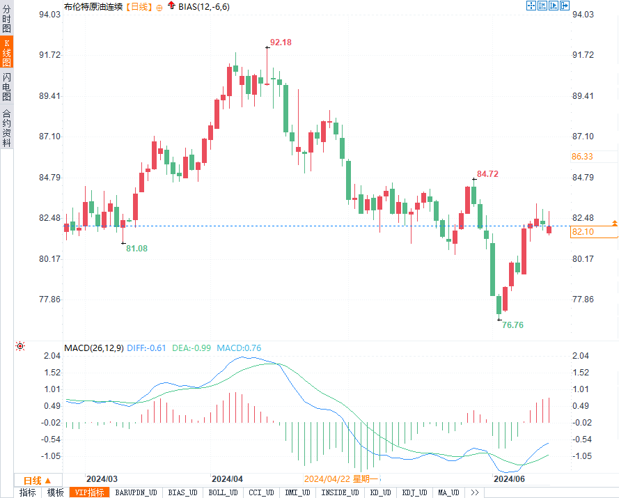 布伦特原油分别报78.37美元/桶和82.51美元/桶。