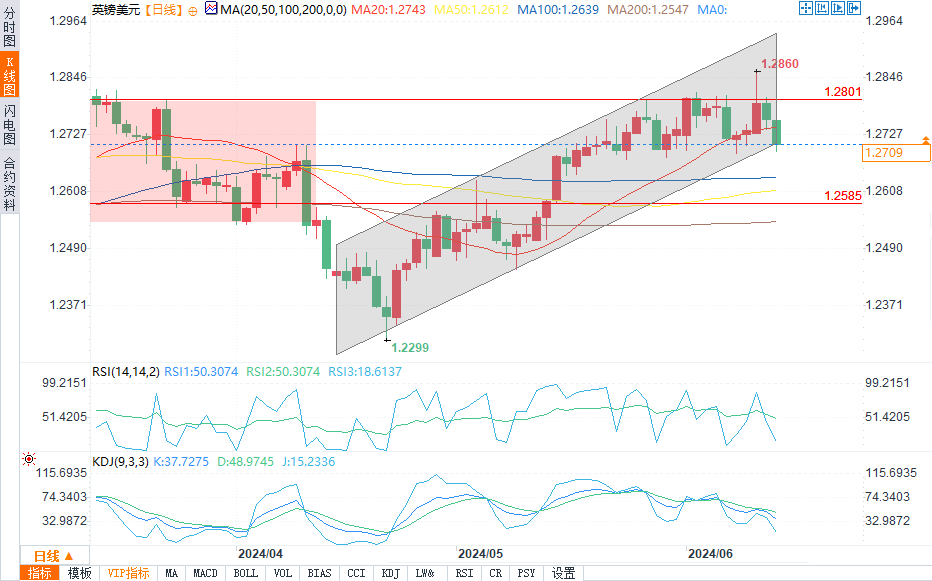 50日均线目前位于1.27579,高于200日均线1.26919,暗示更广泛的看跌趋势。