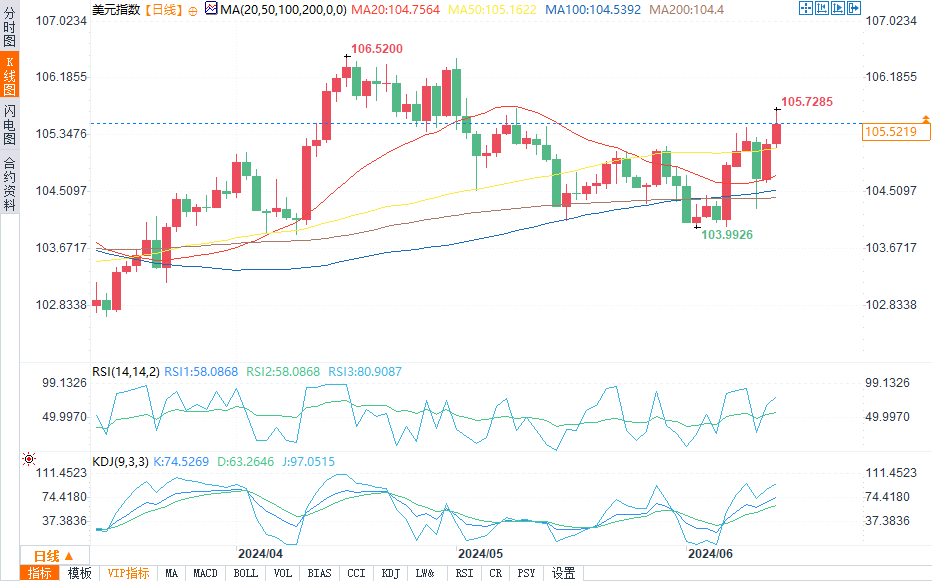 美元指数报105.5569/669,涨幅0.31%。欧元/美元报1.0695/96,跌幅0.38%。英镑/美元报1.2703/04,跌幅0.45%。