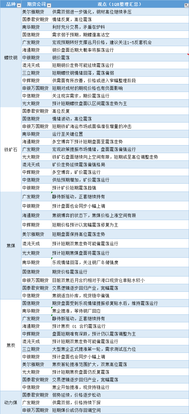标题:期货公司观点汇总一张图:11月22日黑色系(螺纹钢、焦煤、焦炭、铁矿石、动力煤等)