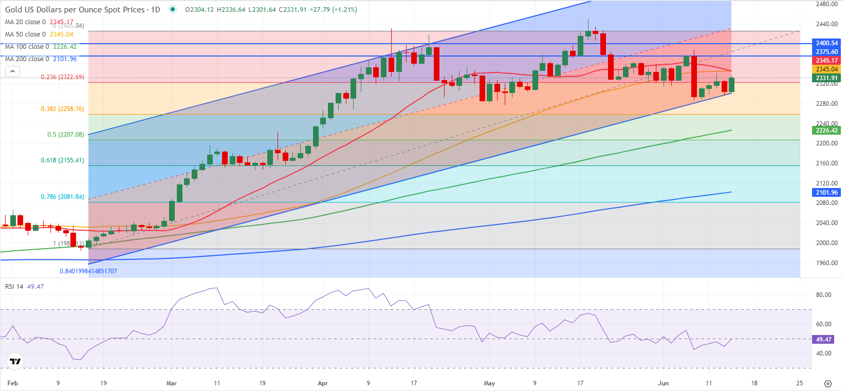 在上行方面,Sengezer称,20日简单移动平均线(SMA)和50日SMA在2345美元/盎司处形成首个阻力位。假如金价突破上述水平并将其转为支撑位,技术买家可能会采取行动。在这种情况下,2380美元/盎司(静态水平)可能被视为下一个障碍,接下来的阻力在2400美元/盎司(心理水平,静态水平)。