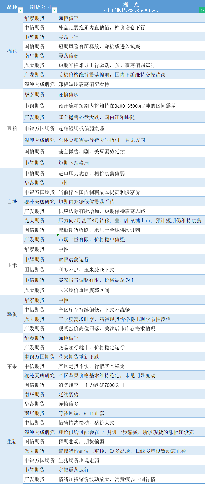 期货公司观点汇总一张图:6月18日农产品(棉花、豆粕、白糖、玉米、鸡蛋、生猪等)