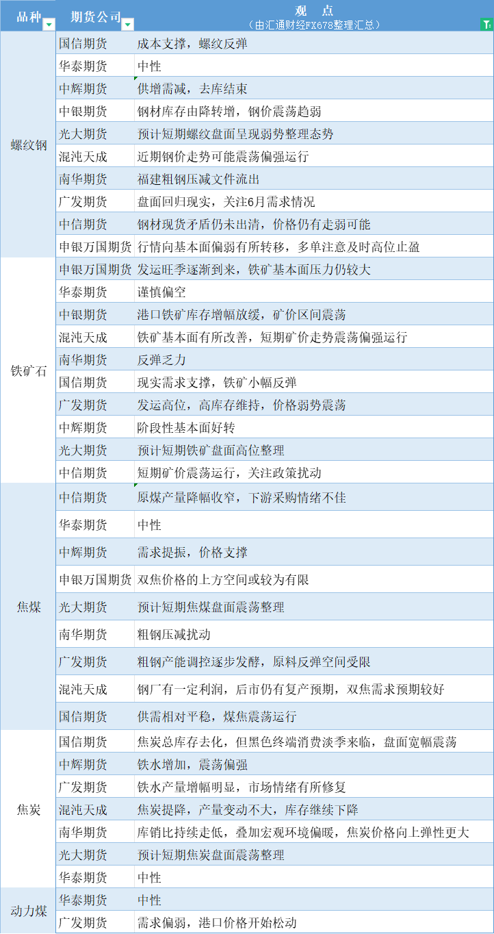 标题:期货公司观点汇总一张图:6月18日黑色系(螺纹钢、焦煤、焦炭、铁矿石、动力煤等)