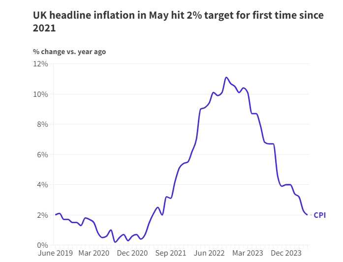 6月19日公布的数据显示,英国5月CPI近三年来首次降至英国央行设定的2%的目标。