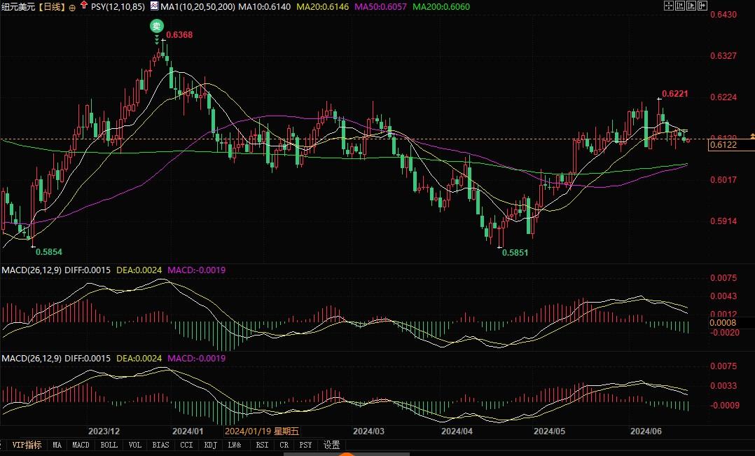 纽元兑美元报0.6122/24