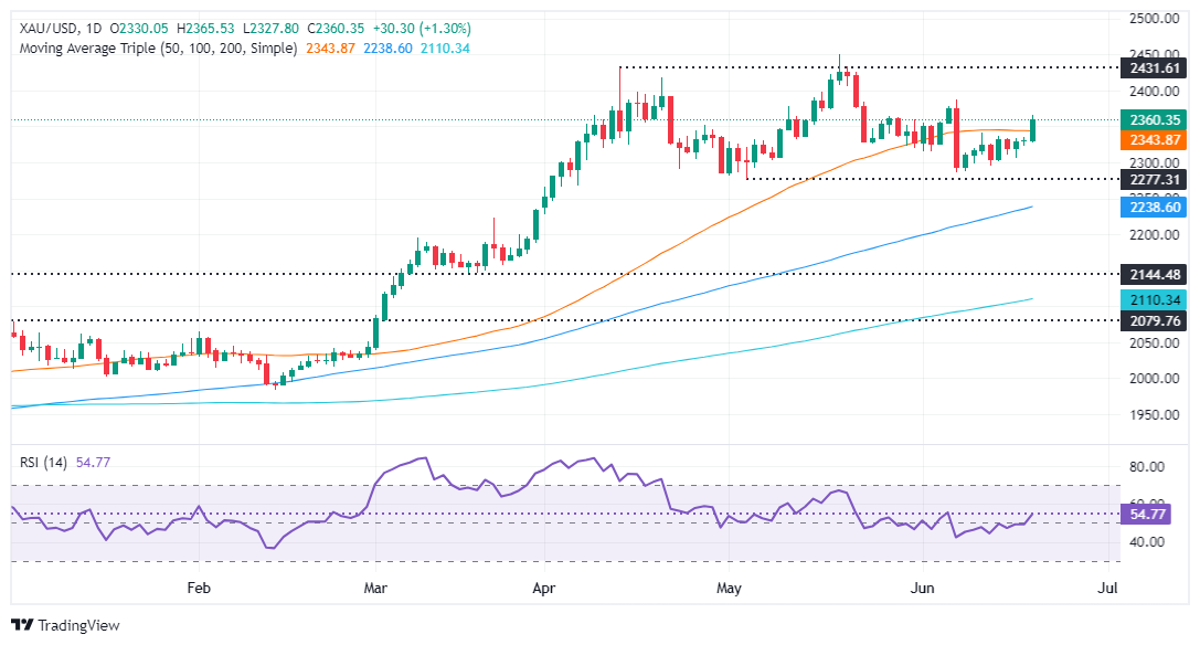 FXStreet分析师Christian Borjon Valencia指出,从黄金日线图来看,金价日收盘价位于50日简单移动平均线(在2343美元/盎司),这可能否定看空的头肩形态,并为金价进一步上涨打开道路。
