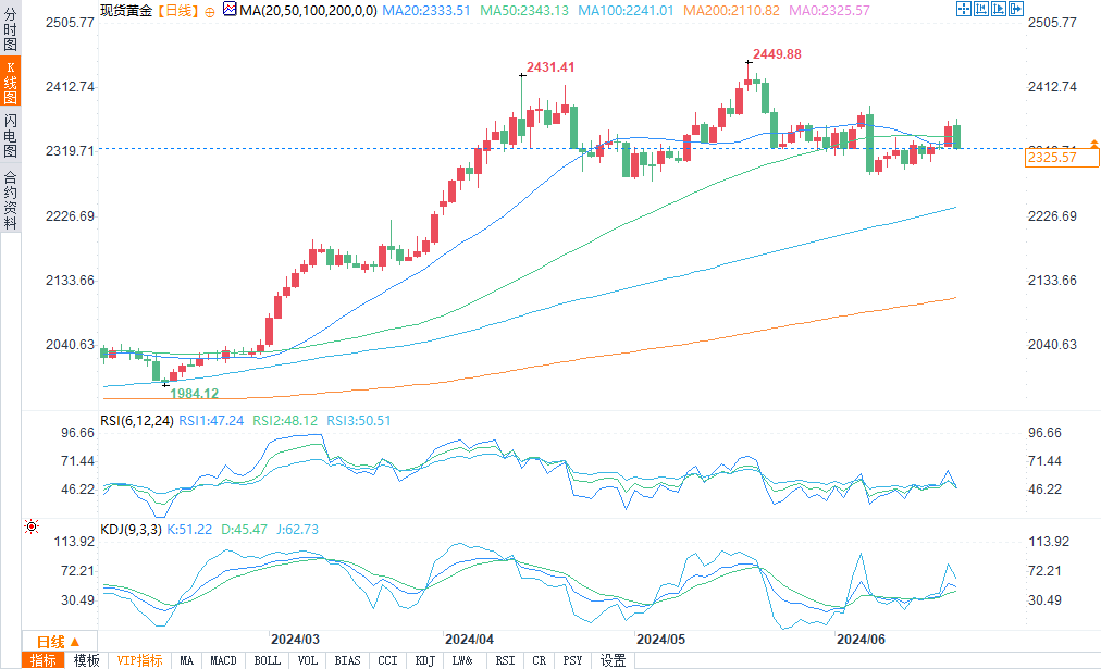 现货黄金报2327.37美元/盎司,跌幅1.38%。