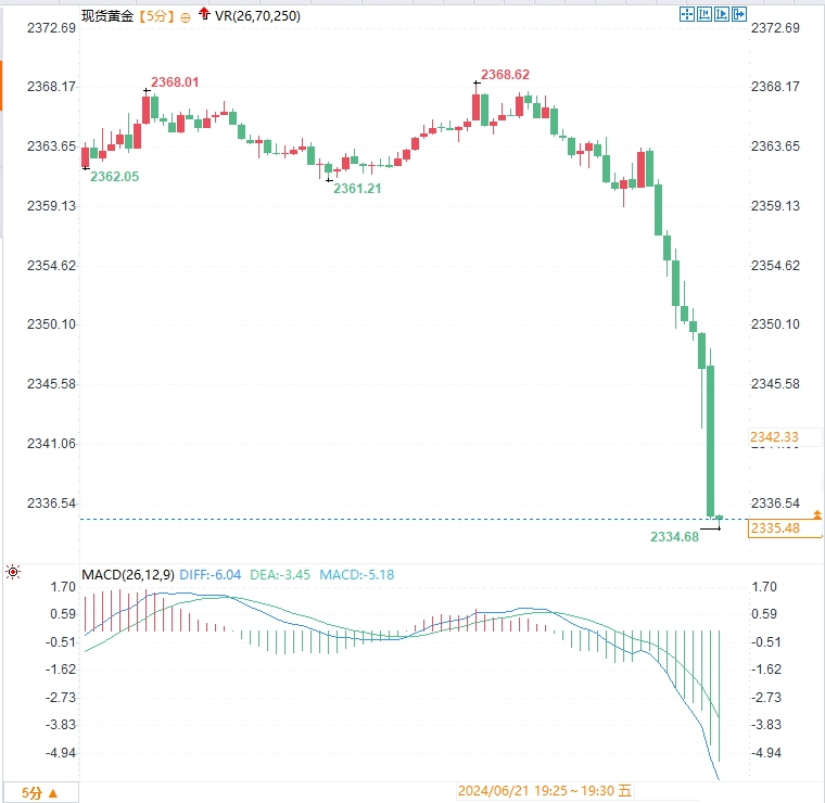 现货黄金跌幅扩大,失守2340关口,截至发稿报2335.22美元/盎司,日内跌幅超过1%。与此同时,