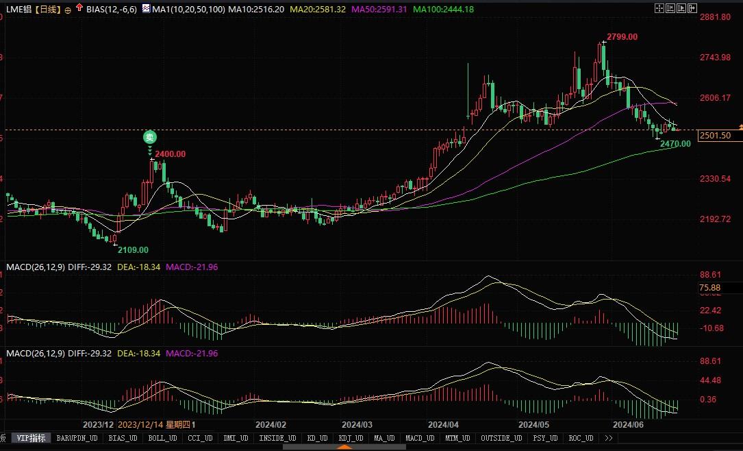 汇通财经APP讯——整个5月份铝的表现优于其他所有基本金属,涨幅为5.28%。5月29日,价格达到了自2022年6月以来的最高水平,然后在6月的前三周失去了5月份的全部涨幅。